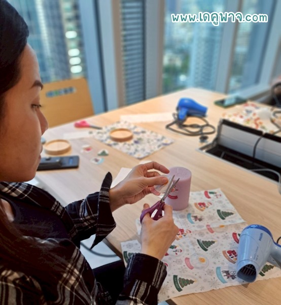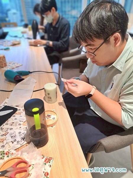 28/5/2568 เดคูพาจ.com จัดกิจกรรม Workshop สอนเดคูพาจบนเทียนหอมและที่รองไม้ ให้กับพนักงานธนาคาร UOB สาขาสุขุมวิท (สำนักงานใหญ่) จำำนวน 30 ท่าน